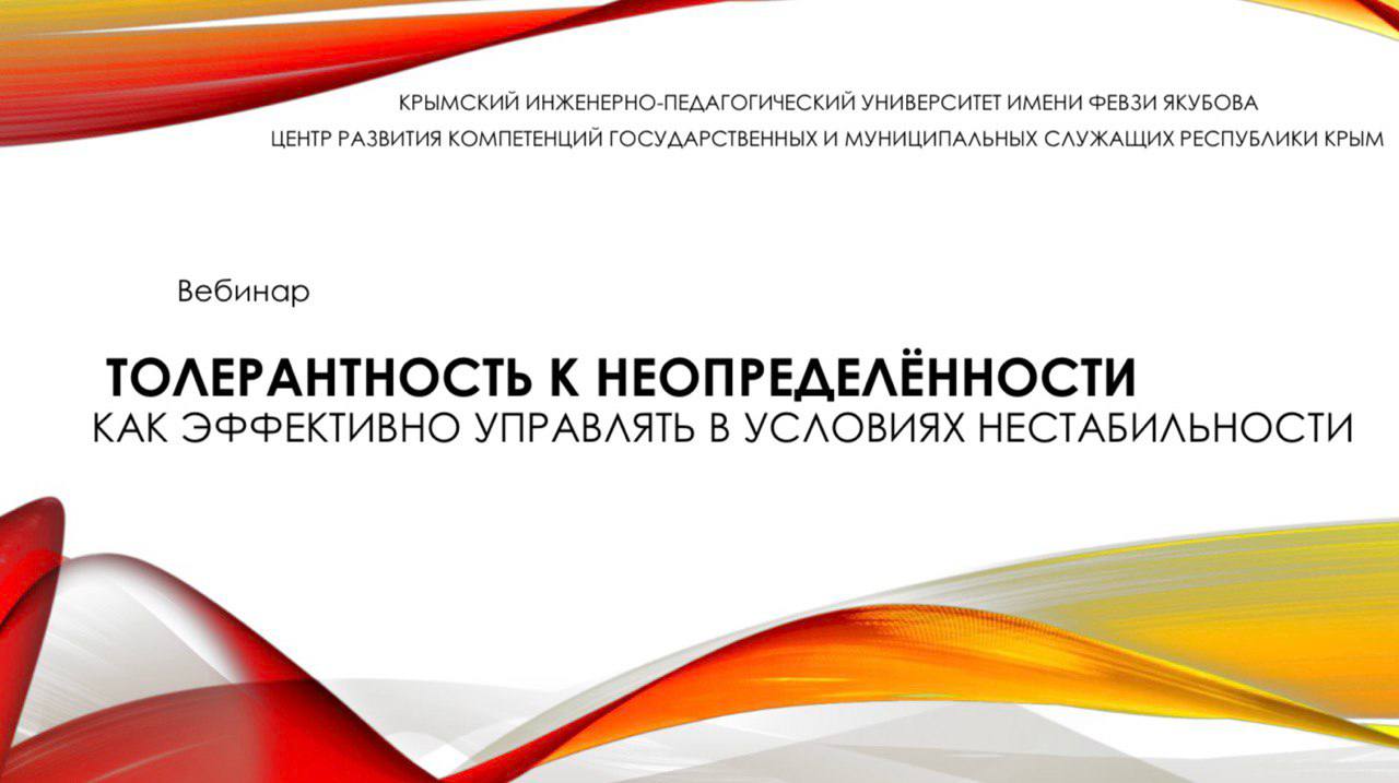 28 апреля 2025 года в Центре развития компетенцией государственных и муниципальных служащих Республики Крым (ЦРК ГМС РК – далее), в рамках серии занятий по модулю «Психология управления: актуальные проблемы и инструменты их решения»модульной Программы развития компетенций глав сельский поселений прошел вебинар на тему: «Толерантность к неопределенности: как эффективно управлять в условиях нестабильности».